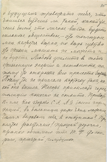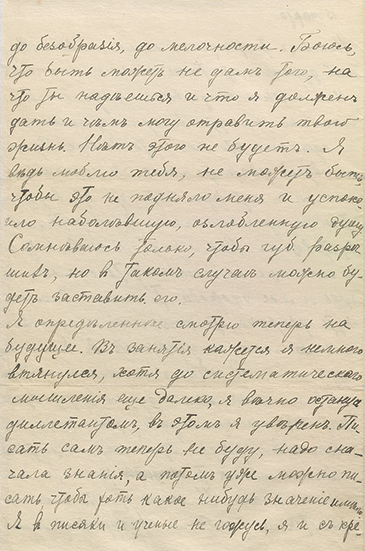 – Когда ты подрастешь, будешь большим и сильным, мы научимся сами летать на аэроплане и полетим, как птицы, к высоким горам, к облакам на небе, а под нами будут села и города, поля и леса, долины и реки, озера и моря, весь мир прекрасный. И солнце будет над нами, а мы будем лететь. Ясик мой, не огорчайся, что я теперь не с тобой, иначе не может быть, я люблю тебя, мое солнышко, и ты радость моя, хотя я тебя вижу только во сне и в мыслях. Ты вся радость моя. Будь хорошим, добрым, веселым и здоровым, чтобы всегда быть радостью для мамуси, для меня и для людей, чтобы, когда вырастешь, трудиться, радоваться самому своей работой и радовать других, быть им примером.