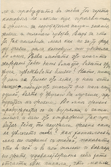 «Дорогая Альдона! Далеко друг от друга разошлись наши пути, но память о дорогих и еще невинных днях моего детства, память о матери нашей – все это невольно толкало и толкает меня не рвать нити, соединяющей нас, как бы она тонка ни была. Поэтому не сердись на меня за мои убеждения, в них нет места для ненависти к людям. Я возненавидел богатство, так как полюбил людей, так как я вижу и чувствую всеми струнами своей души, что сегодня… люди поклоняются золотому тельцу, который превратил человеческие души в скотские и изгнал из сердец людей любовь. Помни, что в душе таких людей, как я, есть святая искра… которая дает счастье даже на костре».