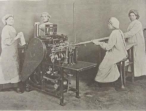 Обклеивание чайных бандеролей на фабрике Высоцкого, начало XX века