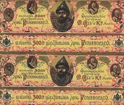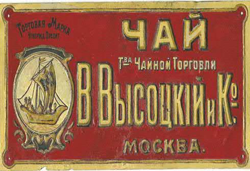 Лицевой вид упаковки чая Высоцких, начало XX века