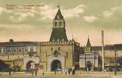 Площадь Ильинские Ворота, наши дни. На втором плане виден комплекс зданий Администрации президента на Старой площади. Старая Китайгородская стена была снесена в 1930-е годы в ходе сталинской реконструкции Москвы