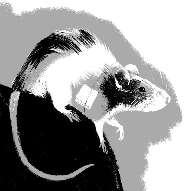Kit-Kat can shake hands with you. He can fetch things. He loves the piano, climbing up on to Veronique’s shoulder whenever she practises. He’s a great tightrope walker, and can do the high jump, put a ring on your finger, recognise people, and even untie your shoelaces! He can’t tie them yet (but Lance can barely do that) and Veronique’s training him – and I know who I’d bet on to get there first. Veronique’s trained Kit-Kat a lot in fact, but he was like that even before, because Veronique’s dad’s a scientist and Kit-Kat came from his lab. He is in fact the Veronique of the rat world.