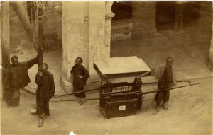 Uno dei lavori più umili in Cina era quello del portatore di risciò. Come vedete in questa foto si trattava di uomini giovani invecchiati prematuramente che si guadagnavano la vita facendo la parte del ” cavallo”. Straccioni, scalzi, con una scodella di riso al giorno accettavano in Cina di fare questo lavoro umile per necessità. I vicoli Cinesi, infatti, spesso erano stretti ,in puro stile medievale, e non permettevano l’ingresso ad un cavallo. Si utilizzavano quindi servi o schiavi che per 10 ore al giorno trasportavano di corsa i Signori da una parte all’altra della città. La maggior parte di loro moriva di infarto prima dei 35 anni.