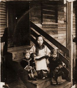 La storia delle piccole schiave rapite alle famiglie, in genere contadine, per essere inviate in America e utilizzate come prostitute inizia nel 1865. Fu la Mafia Cinese, con accordi diretti col governo Cinese, a stabilirla e mantenerla in America al fine di evitare ” mescolanze” tra Cinesi e Americani. In seguito si estese anche agli yankiees, che potevano godere di una bambina Cinese in appositi retro-negozi per pochi spiccioli. A differenza dei connazionali maschi, che dopo una decina di anni di duro lavoro potevano tornare in patria, le schiave Cinesi morivano in America senza mai aver rivisto il sole. Vivevano in completa separazione con l’esterno, in celle isolate, accudite solo da una vecchia mammana che spesso le aiutava a partorire o a liberarsi dei numerosi figli illegittimi. Uscivano dalle loro celle solo da morte dopo essersi congiunte con migliaia di uomini. La mafia si liberava di loro facendole scivolare nottetempo nei fiumi o cementandole sotto terra. Qui una giovane donna di Honk Kong con abiti tradizionali nel 1860.