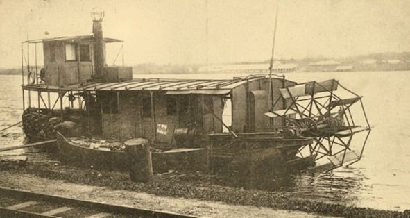 На борту была установлена электрическая световая установка (прожектор), чтобы проливать «лучи цивилизации» на темные воды дикой реки, но поскольку на закате пароходы останавливаются до утра, а дневные туманы здесь неизвестны, эта установка вряд ли когда-либо используется. Прожектор был установлен впереди рубки, чтобы выполнять какую-то изумительную службу, но он никогда не был способен проникать в темные воды и обнаруживать бесконечные препятствия и песчаные отмели. Пулемет вальяжно стоит на носу судна, готовый послать свой град смерти в джунгли, если конечно, на борту есть какие-либо боеприпасы для этой цели. Судно имеет два винта и, очевидно, построено для скорости, но обычно ему удается прибыть в пункт назначения на день позже, чем у любого из пароходов с кормовым гребным колесом, и это несмотря на то, что «катер» не везет ни груза, ни толпу цветных пассажиров.