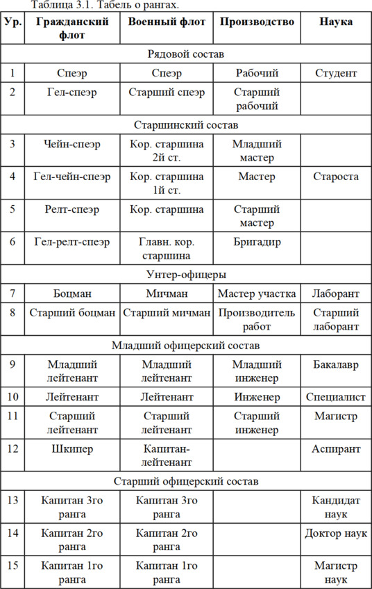 Прямого равенства между званиями нет, так как они касаются разных профессий. Тем не менее, табель вносит определённый порядок и уровень соответствия (рис.3.1).
