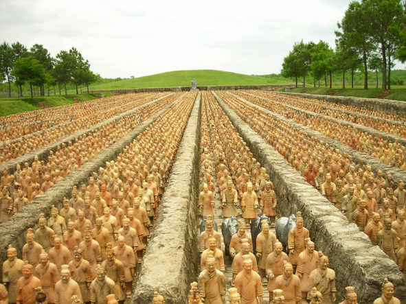 Армия глиняных воинов покоится в боевом построении в параллельных склепах в 1,5 км на восток от гробницы императора.