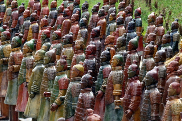 Фигуры воинов являются настоящими произведениями искусства, поскольку выполнялись в индивидуальном порядке, вручную и с использованием различных методик. Каждая отдельная статуя имеет свои уникальные черты и даже выражения лица. После придания необходимой формы статуи обжигались и покрывались специальной органической глазурью, поверх которой наносилась краска.