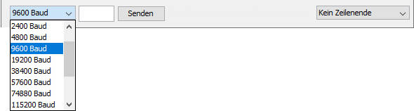 Wichtig ist hier die Baudrate, die mit 9600 Baud angegeben wurde. Wird von einem Terminalprogramm wie dem Serial Monitor darauf zugegriffen, muss die Baudrate dort ebenfalls mit 9600 Baud angegeben werden, was dort in der linken unteren Ecke über eine Liste mit unterstützten Baudraten erfolgt: