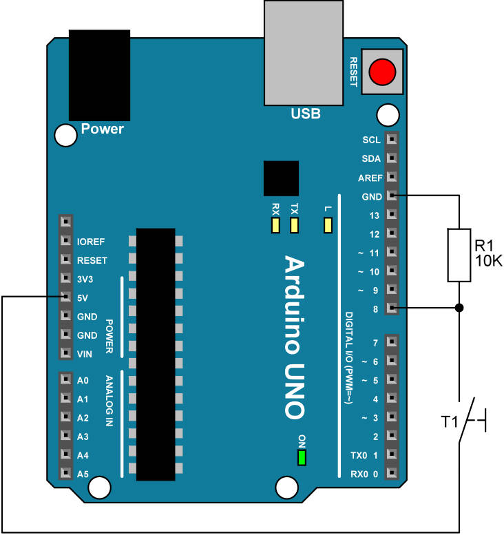 int tasterPin = 8; // Taster-Pin void setup() { Serial.begin(9600); // Serielle Schnittstelle } void loop() { Serial.println(digitalRead(tasterPin)); }
