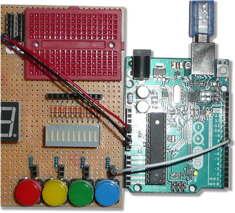 Der entsprechende Schaltungsaufbau auf dem Arduino Discoveryboard sieht so aus: