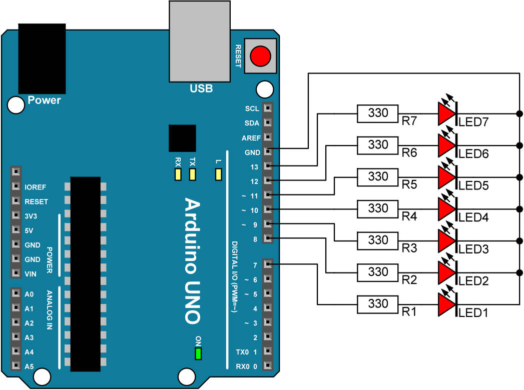 int ledPin[] = {7, 8, 9, 10, 11, 12, 13};