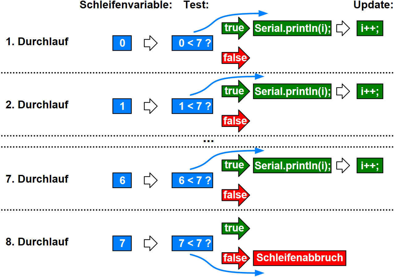 Die folgende Abbildung 7 zeigt dir die einzelnen Durchläufe der for-Schleife etwas genauer: