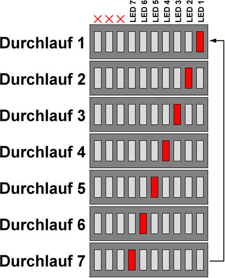 Abb. 1: Die Leuchtsequenz der sieben LEDs