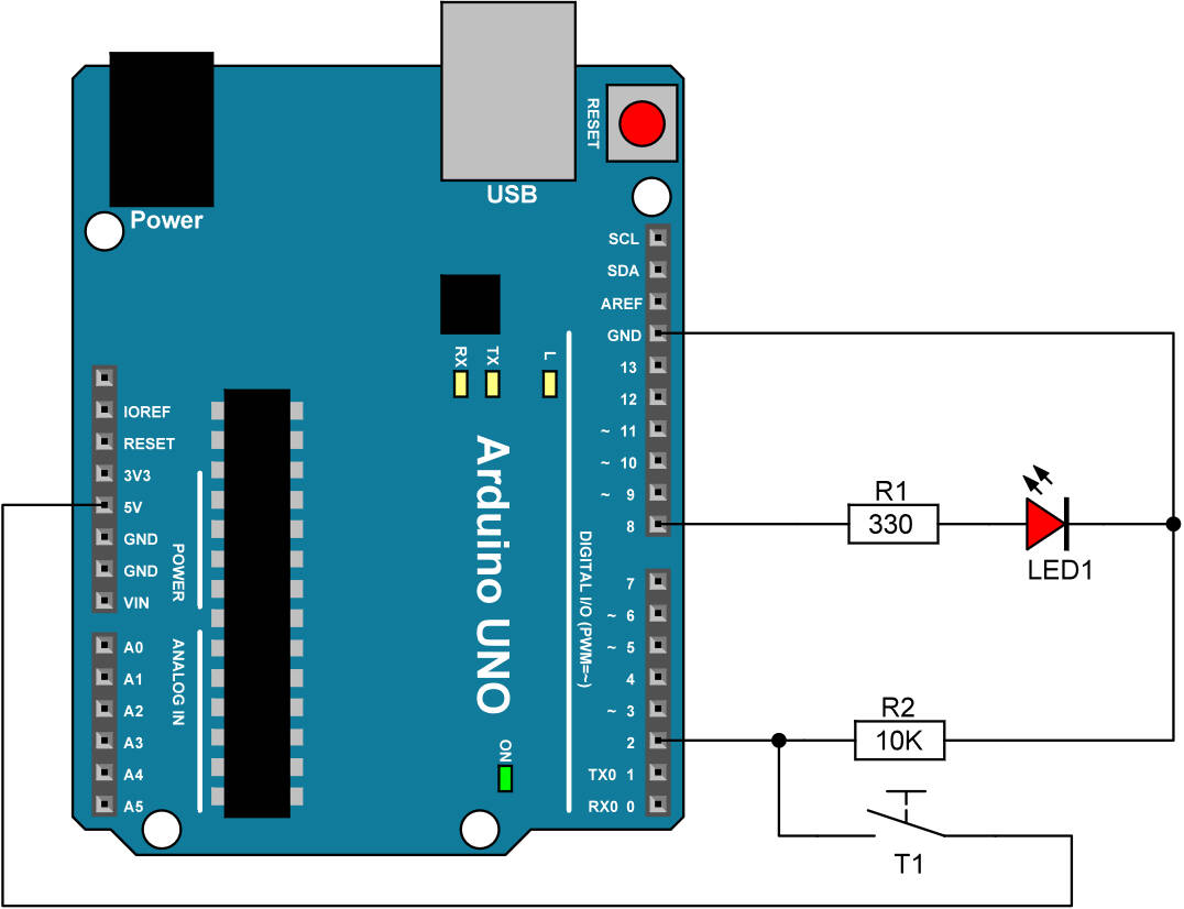 Abb. 7: Der Schaltplan für das Toggeln der LED über den Taster