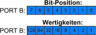 Werfen wir noch einmal einen Blick auf das Register PORT B.