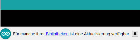 Die Entwicklungsumgebung stellt eine große Anzahl von Bibliotheken zur Verfügung, die bei der Installation auf deinen Computer mit installiert werden. Sie können für die unterschiedlichsten Anwendungszwecke genutzt werden. In regelmäßigen Abständen werden Verbesserungen, sogenannte Aktualisierungen, zur Verfügung gestellt. Wenn die Entwicklungsumgebung derartige Updates erkennt, erfolgt ein Hinweis: