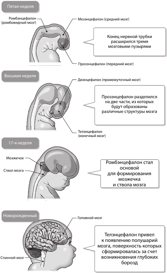 4. Формирование мозга у человека из нервной трубки от пятой недели до рождения