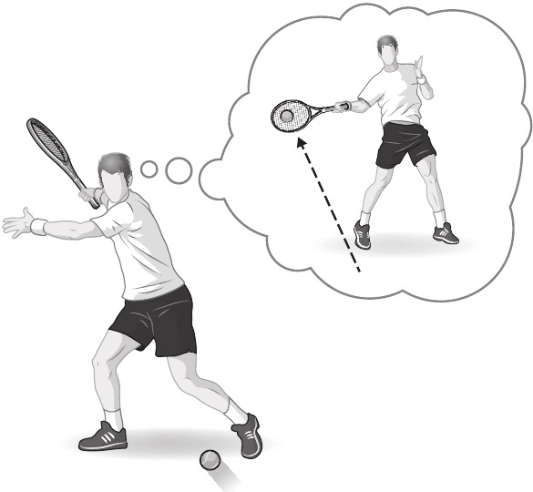Между тем, мозг, который ограничивался бы исключительно внешними стимулами, очень плохо координировал бы наше взаимодействие с событиями. Канадский нейробиолог Патрик Каванах приводит пример теннисиста, который должен ударить ракеткой по мячу, летящему со скоростью 40 м/с. Если бы спортсмен дожидался того момента, когда мяч окажется рядом с ним, чтобы поставить руку в соответствующее положение, то он никогда бы не успевал ударить ракеткой по мячу. За десятую долю секунды, которая нужна ему, чтобы определить положение мяча и отреагировать, мяч пролетел бы на четыре метра больше и был бы слишком далеко от ракетки. Если бы рука теннисиста двигалась с целью перехватить мяч, то это значило бы, что его мозг опережает траекторию. С каждым нашим движением мы регулярно опережаем их последствия. Простой реакции на внешние стимулы недостаточно: в этом случае мы были бы обречены на неудачу, так как всегда опаздывали бы реагировать на те или иные события.
