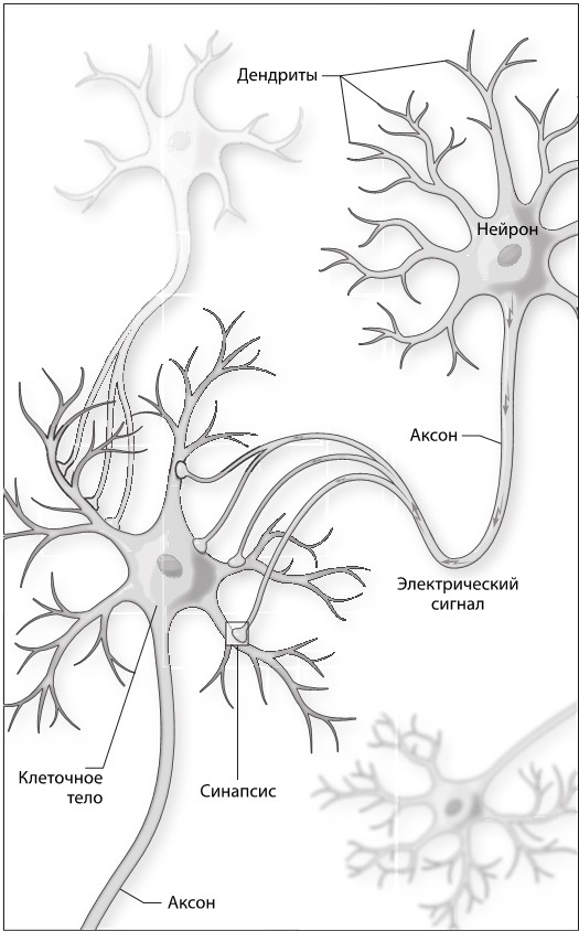 Между тем, с эволюционной точки зрения, на фоне усложнения нервной системы, такой подход показал свои недостатки: по мере развития организма нервные клетки все больше удаляются друг от друга. Как обеспечить их взаимодействие в условиях дистанцирования? Приблизительно 500 миллионов лет назад произошло впечатляющее «обновление», благодаря которому стал возможен быстрый и точный обмен информацией между удаленными клетками – посредством электрической связи, которая называется потенциалом действия (мы вернемся к этому явлению в другой главе). У потенциала действия есть «цифровой» формат: он присутствует или отсутствует, что соответствует двоичной системе счисления. Таким образом, передаваемая информация меньше подвержена затуханию из-за внешних помех, когда сигнал проходит большие расстояния в организме. Более того, он очень быстро перемещается по нервной системе, со скоростью до 100 м/с. Эти два важных качества для организмов, находящихся в пространстве на расстоянии друг от друга.