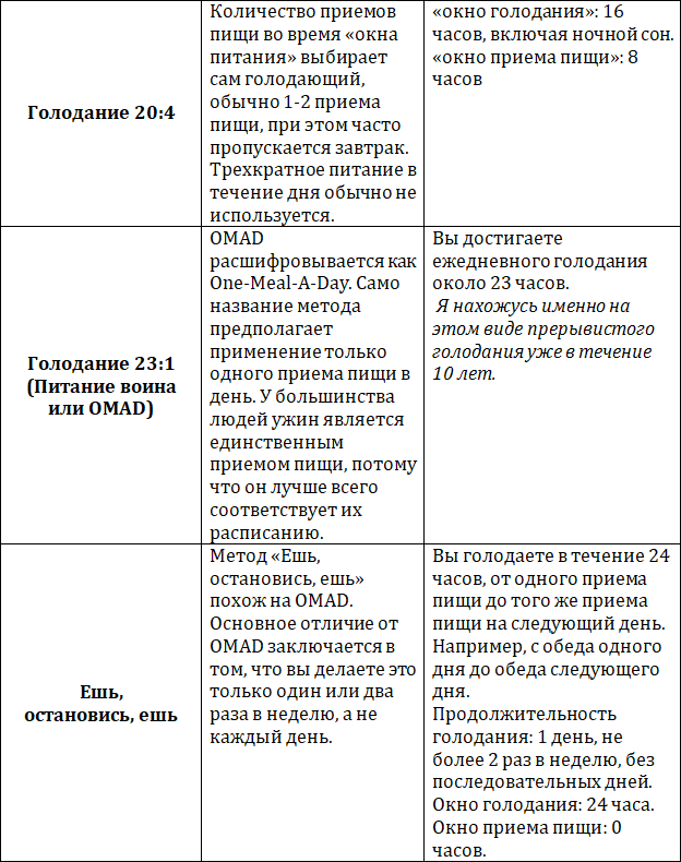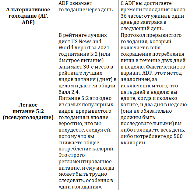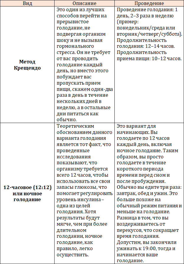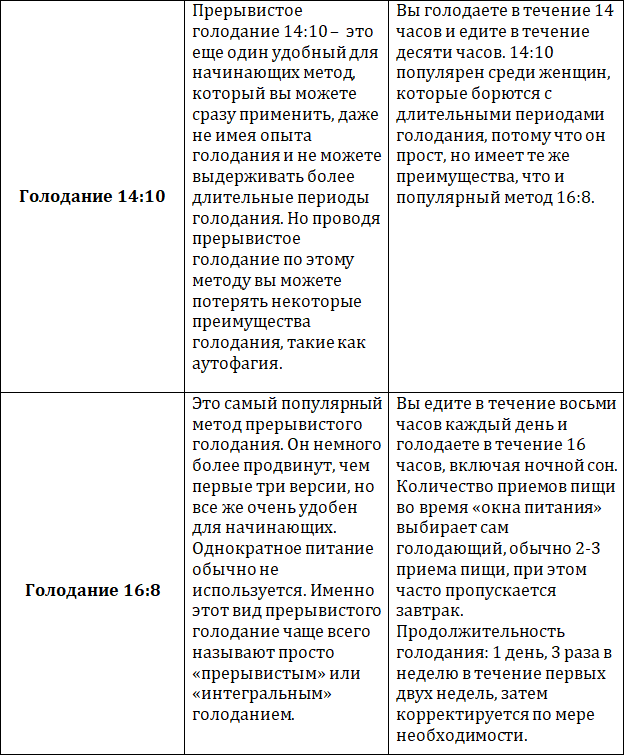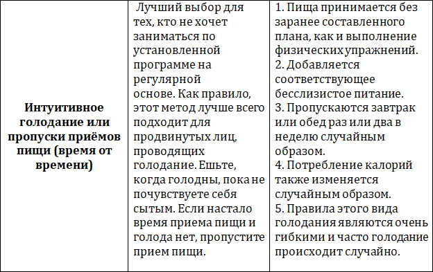 Обычно прерывистое голодание, как общий термин, который включает в себя следующее виды голодания: