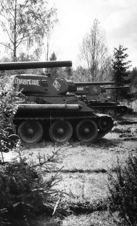 На исходной позиции – Т-34 «Пархоменко» и «Котовский» из состава 116-й танковой бригады. Западный фронт, 1942 год