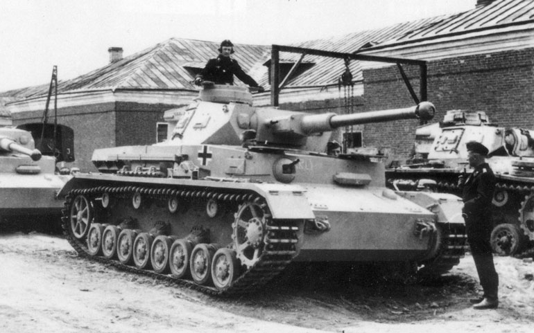 Танки Pz.IV Ausf.F2. На эти новенькие, только что переданные войскам машины еще не нанесены дивизионные эмблемы. Восточный фронт, 1942 год