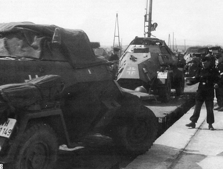 Разгрузка одного из подразделений 4-й танковой армии. Восточный фронт, июль 1942 года. На платформах – бронеавтомобили Sd.Kfz.222