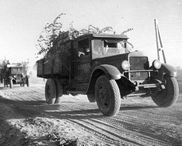 Колонна автомобилей ЗИС-5 с боеприпасами. Южный фронт, 1942 год