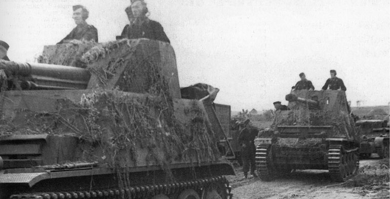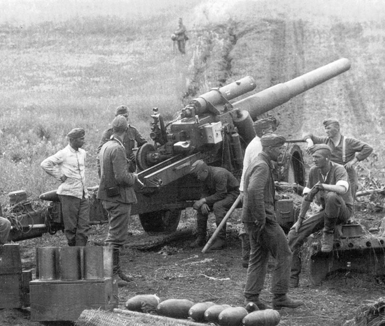 150-мм тяжелая полевая гаубица F.H.18 на огневой позиции. 4-я танковая армия, армейская группа «Вейхс», июнь 1942 года
