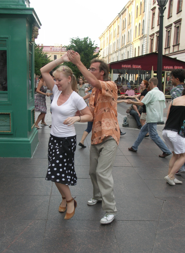 В детстве я недолгое время ходила на бальные танцы… Мечта о танцах возродилась во мне именно тогда, на Дворцовой площади. Неужели можно и сейчас научиться танцевать??? Эта мысль захватила меня настолько, что я стала искать информацию о занятиях танцами для взрослых и… выбрала для себя направление социальных танцев в стиле свинг. Нашла несколько школ в Петербурге и обзвонила их… Меня заверили, что отсутствие партнера не станет препятствием для обучения, и я с нетерпением стала ждать осени – начала занятий после летних каникул. 1 сентября, закончив рабочий день, я бежала на первое занятие в танцевальную школу!