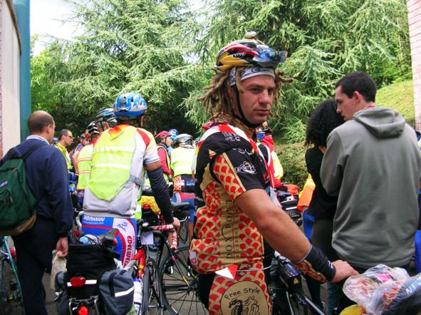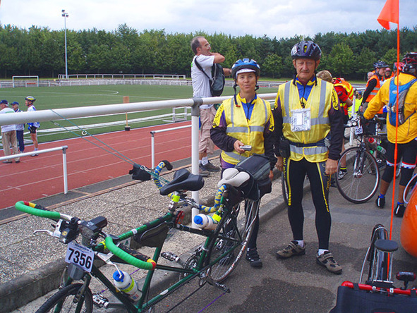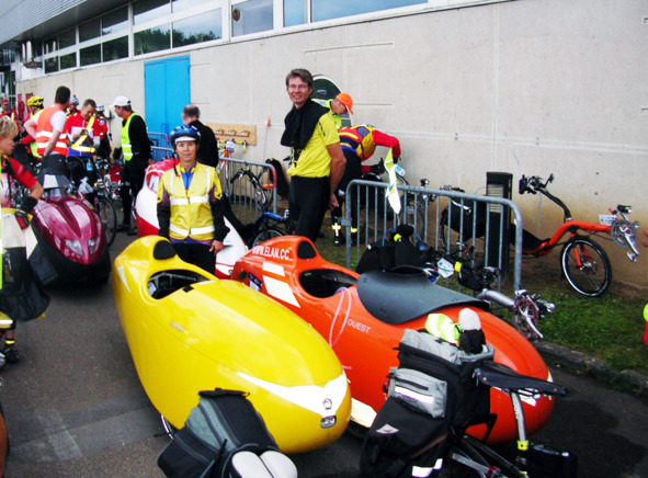 Тандемы и экзотические велосипеды организаторы направляют по дороге вдоль спортивного зала. Тандем Реми оказался первым, за ним пристраивается Марк, и наш тандем, следом. Нас быстро регистрируют без излишних формальностей и проведения технического осмотра. До старта ещё более 3-х часов. Но здесь уже можно расслабиться.