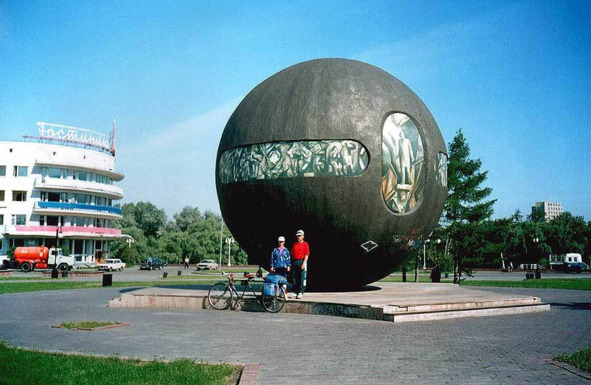 Этот памятник – огромное пушечное ядро, символ первооткрывателей Сибири. На нём изображения людей, вошедших в историю и многое сделавших для Омска.