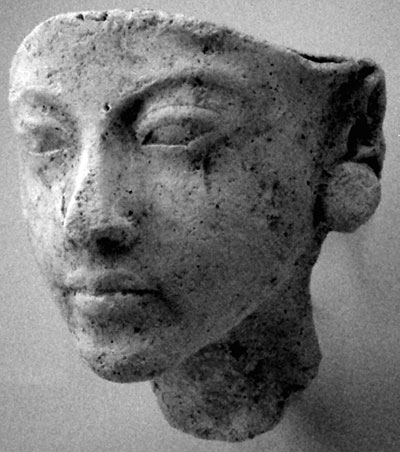 Здесь надо упомянуть об особенностях того искусства, которое породила реформа. По канонам Древнего и Среднего царств фараон всегда могущественный, ноги как столбы, торс как скала, голова как огромная туча. Эхнатон, вероятно, отменил эти требования и предложил изображать его таким, каким он был. А это довольно щуплая фигура, с узкими плечами, со слегка отвисшим животом, голова с могучим лбом мыслителя, лицо со слегка раскосыми глазами. И еще музыкальные руки. Сохранился кусочек барельефа, где руки, только руки, ладони Эхнатона и Нефертити, сложены с исключительной нежностью.