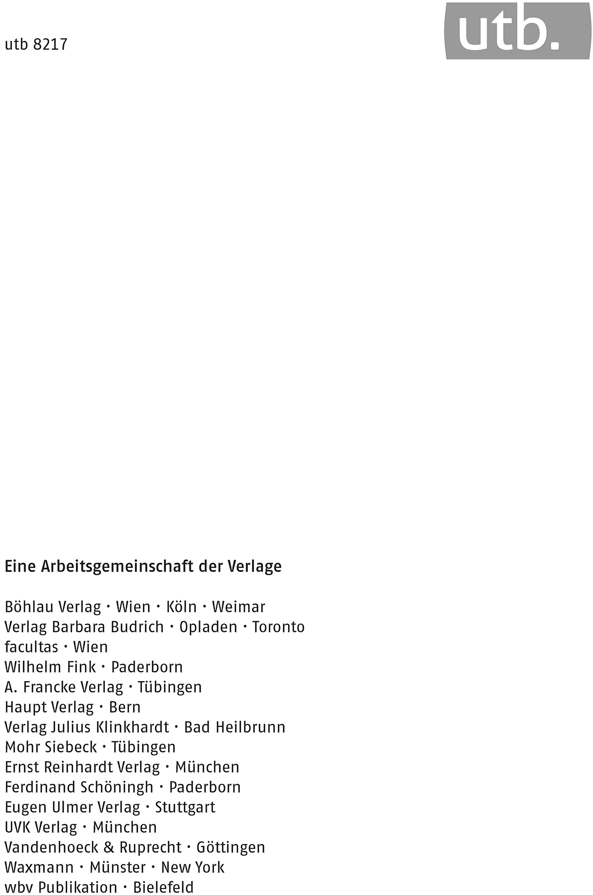 Das Werk einschließlich aller seiner Teile ist urheberrechtlich geschützt. Jede Verwertung außerhalb der engen Grenzen des Urheberrechtsgesetzes ist ohne Zustimmung des Verlages unzulässig und strafbar. Das gilt insbesondere für Vervielfältigungen, Übersetzungen, Mikroverfilmungen und die Einspeicherung und Verarbeitung in elektronischen Systemen.
