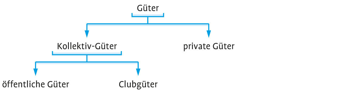 Güter lassen sich nach zwei grundlegenden Eigenschaften charakterisieren: Rivalität (Samuelson 1954) und Ausschließbarkeit (Musgrave und Peacock 1958). Demnach sind Güter durch eine rivalisierende Nutzung gekennzeichnet, wenn sie durch den Konsum eines Akteurs für alle anderen Akteure nicht mehr zur Verfügung stehen. Dies lässt sich am Beispiel einer Zwischenmahlzeit verdeutlichen. So kann ein und dieselbe Zwischenmahlzeit nur einmal und von einer Person verspeist werden und entzieht sich daher der Konsummöglichkeit durch andere Personen. Nicht-rivalisierend sind Güter hingegen dann, wenn ihr Konsum durch mehrere Konsumenten in gleicher Form möglich ist bzw. niemand in seinem Konsum eines Guts durch den Konsum anderer beeinträchtigt wird (z. B. Besuch einer Theatervorführung durch viele Zuschauer). Das Ausschlussprinzip eines Gutes bezeichnet die Möglichkeit, den Konsum eines Gutes auf einen oder wenige Konsumenten zu beschränken. So kann der Konsum der Zwischenmahlzeit durch den Kauf (den Erwerb von Eigentumsrechten) gesichert werden. Auch der Theaterbesuch wird durch den Erwerb von Eintrittskarten und die Beschränkung der Besucherplätze gesichert, d. h. im Konsum beschränkt. Nicht alle Güter lassen sich jedoch auf diese Weise kontrollieren. So steht die Nutzung eines Leuchtturms allen in Sichtweite verkehrenden Schiffen zur Verfügung, ohne dass sie sich an den Kosten des Leuchtturms beteiligen müssen. Während die Rivalität eines Gutes von den technischen und güterspezifischen Bedingungen abhängt, ist der Aspekt des Nutzungsausschlusses grundsätzlich steuerbar und letztlich eine Frage der Kosten, die aufgebracht werden müssen, um andere vom Konsum eines Gutes auszuschließen. Im digitalen Zeitalter sind die Kosten des Nutzungsausschlusses für Musik z. B. so hoch, dass die Musikindustrie das teilweise freie – wenngleich illegale – Abrufen und Hören von Musik nur schwer, wenn überhaupt, verhindern kann. Anhand der beiden diskutierten Eigenschaften lassen sich zwei Arten von Gütern unterscheiden: private und öffentliche Güter.