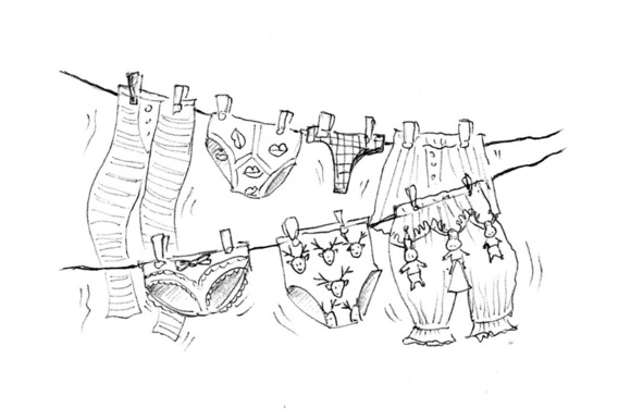 – Давай-ка мы с тобой развесим эти симпатичные трусишки сюда – предложила тетушку Серафима и протянула Томе прищепки.