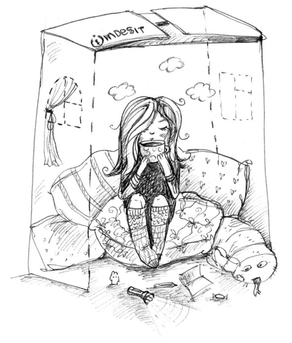 «В конце концов, ни у кого в классе нет такого домика» – подумала Тома, лежа на подушках в своем новом жилище с фонариком и комиксами в руках.