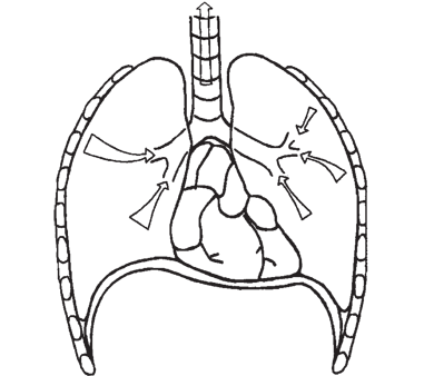 Глубокое дыхание включает в себя процесс расширения и сжатия самой грудной стенки. Ребра подтягиваются вверх, чтобы увеличить пространство внутри грудной клетки. При очень глубоком дыхании объем воздухообмена может достигать от 3000 до 3500 см3.