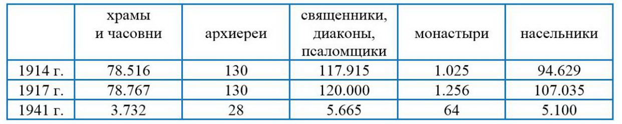 Почти 4 тысячи храмов! Из более, чем 60 тысяч, что действовали в 1917 году. Но, картина представляется еще более безрадостной, если принять во внимание то, что к 1939 году на всей территории страны оставалось лишь около 100 действующих храмов, все же эти тысячи, о которых мы только что упомянули, попали в статистику 1941 года, как оказавшиеся на территории СССР после того, как в соответствии с «пактом Молотова – Риббентропа», были оккупированы часть Польши (к востоку от рек Буг и Сан), страны Прибалтики, Бессарабия и Северная Буковина, а также 11 % территории Финляндии (со вторым по величине городом Выборгом).