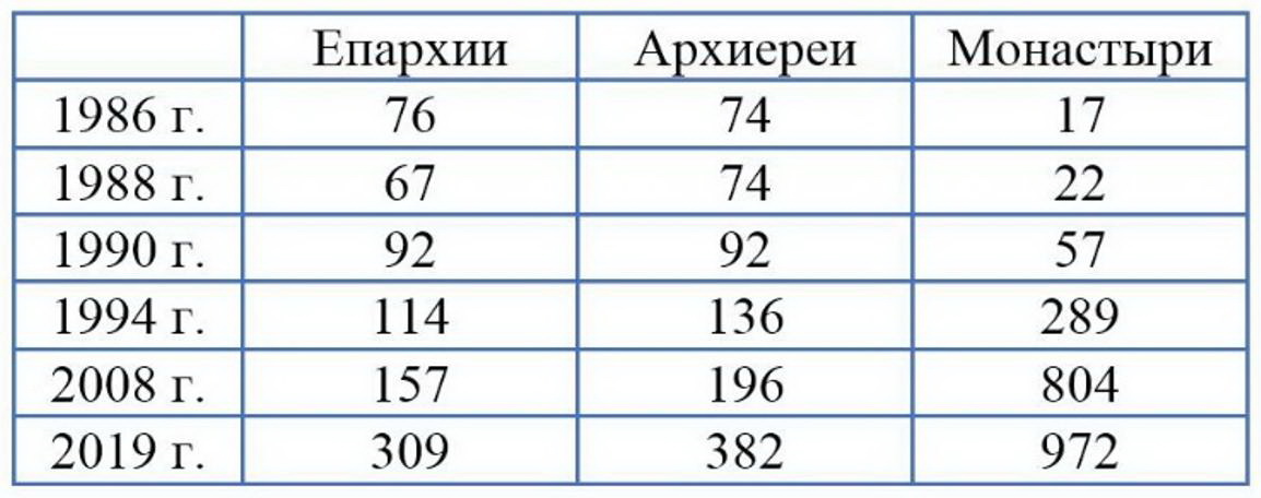 Крутые изменения в законодательстве СССР, ускорившие крах господства КПСС, предоставили РПЦ самые благоприятные возможности, и духовенство эти возможности использовало и самым наилучшим образом. Именно об этом говорит динамика статистических показателей.