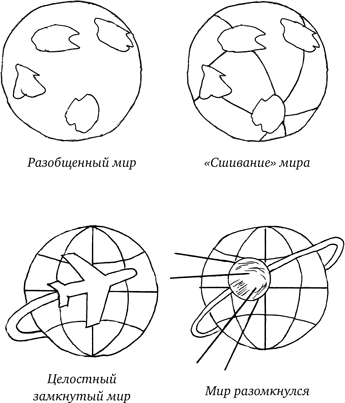 – Тут есть разница. Прежде мир был разобщен: Средиземноморье, Европа, Восточная и Центральная Азия, Иберийская Америка и т. д. То, о чем ты говоришь, объединило этот мир. Путешествия, великие географические открытия, военные походы, развитие торговых путей, дальние дипломатические миссии вели к «сшиванию» мира в некое единство (Великий шелковый путь, Марко Поло, походы Чингисхана и Александра Македонского, Колумб и т. д.). Авиация, а затем системы коммуникации и связи довершили дело: мир стал не только целостным, но и замкнутым. Выход же человека в космос разомкнул пространство.