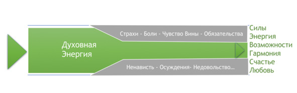Проходу энергии мешают блоки. Блоки возникают благодаря убеждениям и установкам, которые закладываются в нас с детства родителями, потом друзьями и наконец обществом и окружением. Как говорится: «С кем поведешься от того и наберешься». Негативные установки и убеждения загоняют нас в чувства: вины, долга, совести, агрессии, страха и состояния жертвы. Эти чувства вызывают негативные эмоции: страх, ненависть, зависть, депрессию, раздражение и т. д.
