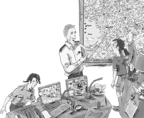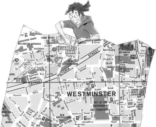 „Wir fahren jetzt erst einmal zu New Scotland Yard.“ Sie faltet einen Stadtplan auseinander und hält ihn den Kindern hin. „Wer findet es zuerst?“