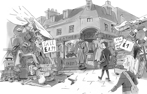 „Da! Sie geht in das Ledergeschäft. ‚Paddy’s‘ steht über dem Eingang“, liest Marie vor.