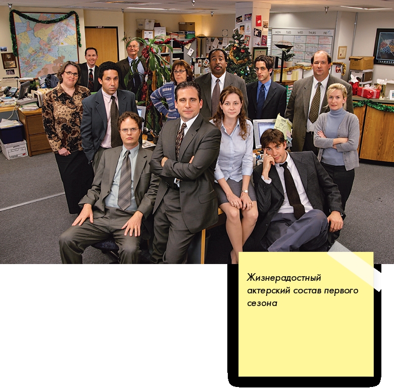 БРАЙАН БАУМГАРТНЕР: Забавно, что ты упомянул этот сериал – я всегда считал, что если бы у американского телевидения было свое генеалогическое древо, то от «Веселой компании» к нашему шоу точно тянулась бы ниточка. Разница только в том, что в «Веселой компании» люди сами выбирали день за днем приходить в тот бар и общаться друг с другом, а в «Офисе» они были вынуждены находиться в одном помещении. Но в обоих случаях комедийный сюжет строился вокруг разношерстной группки людей и эволюции их отношений.
