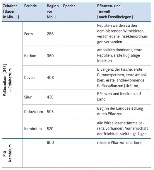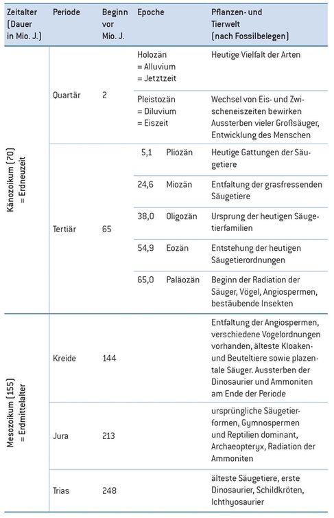 Tabelle 2: Entwicklung der Artenvielfalt im Verlauf der Erdgeschichte