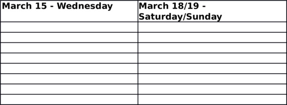 Abide by this calendar every week so you will develop a regular routine while learning how to manage your time.