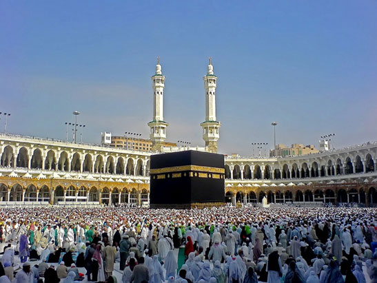 Священный дом стоит в центре огромного двора, окруженного по периметру галереями-портиками. Это многократно перестраивавшаяся мечеть Харам Бейт-Уллах или Масджид аль-Харам, что в переводе с арабского означает заповедная (запретная) мечеть. Сюда устремляются многочисленные паломники, совершая хадж (паломничество) к Дому Аллаха; считается, что каждый мусульманин, если ему позволяет здоровье и финансы, хотя бы раз в жизни должен сделать это.