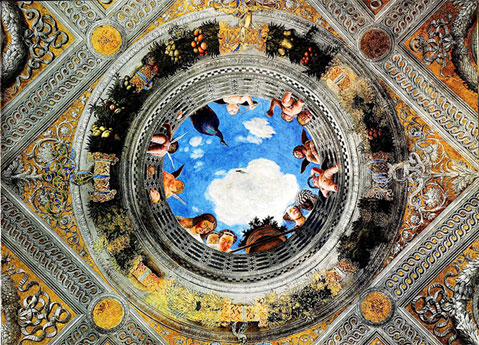 А. Мантенья. Центральный фрагмент росписи сводчатого перекрытия в Камере дельи Спози в палаццо Дукале в Урбино. 1465–1474 гг.